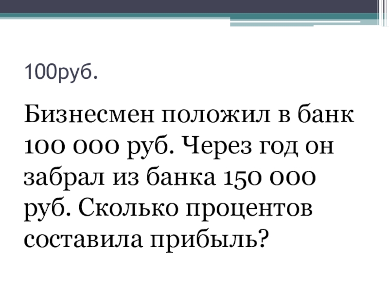Бизнесмен положил в банк 100 000 руб. Через год он забрал