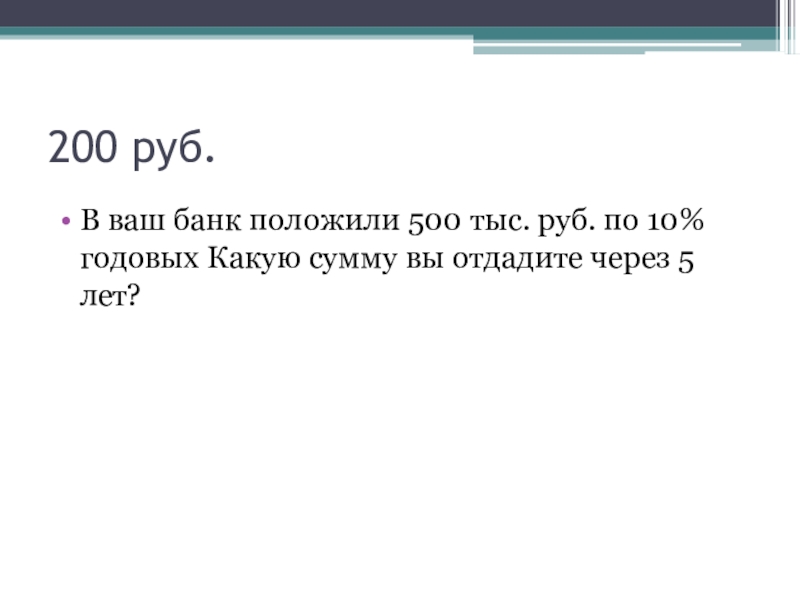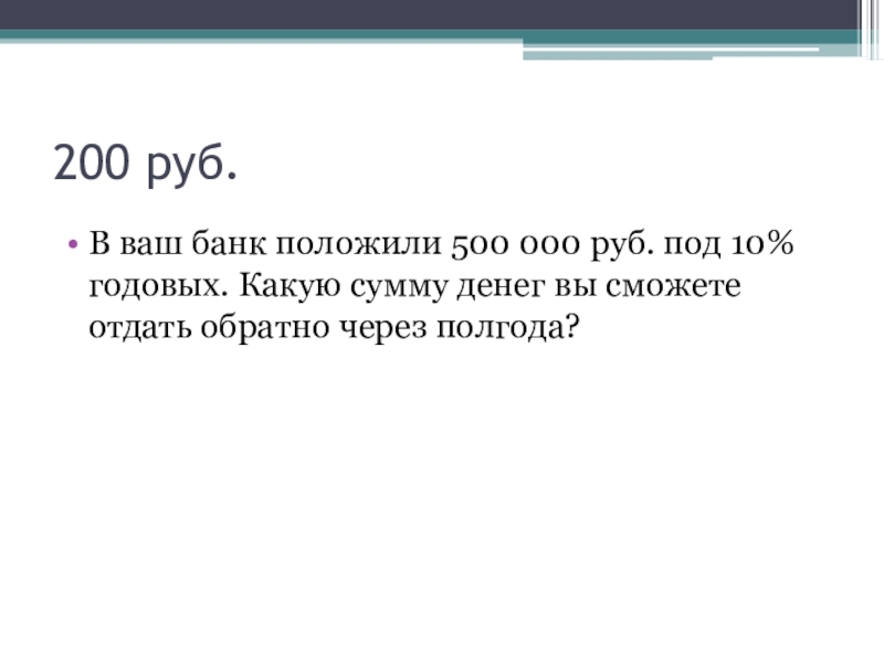 В ваш банк положили 500 000 руб. под 10% годовых.