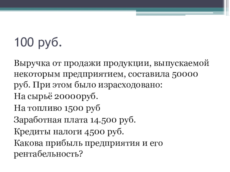 Выручка от продажи продукции, выпускаемой некоторым предприятием, составила 50000 руб.