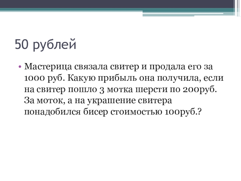 Мастерица связала свитер и продала его за 1000 руб. Какую