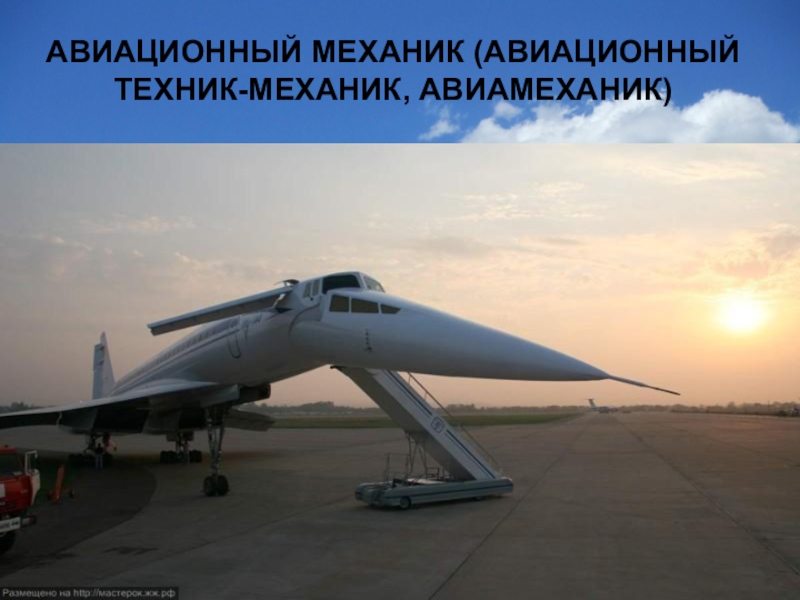 Слайд 15 Авиационный механик (авиационный техник-механик, авиамеханик) - специалист по ремонту и техническому