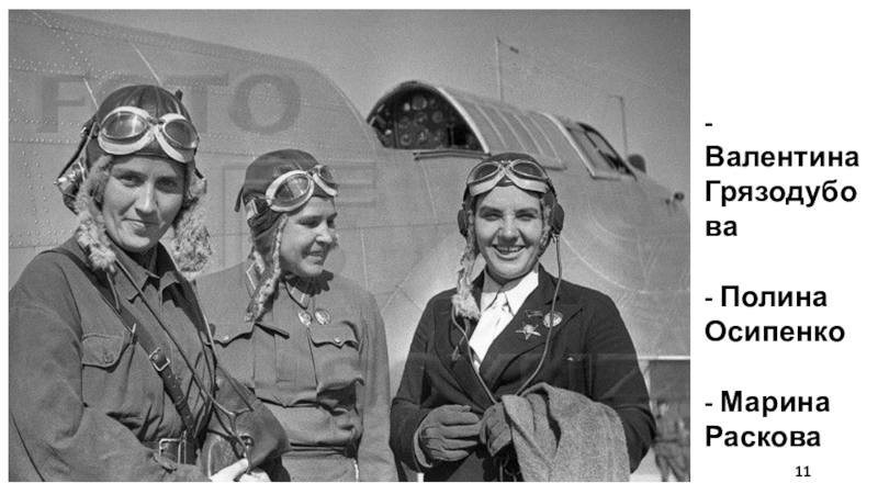 - Валентина Грязодубова- Полина Осипенко- Марина Раскова
