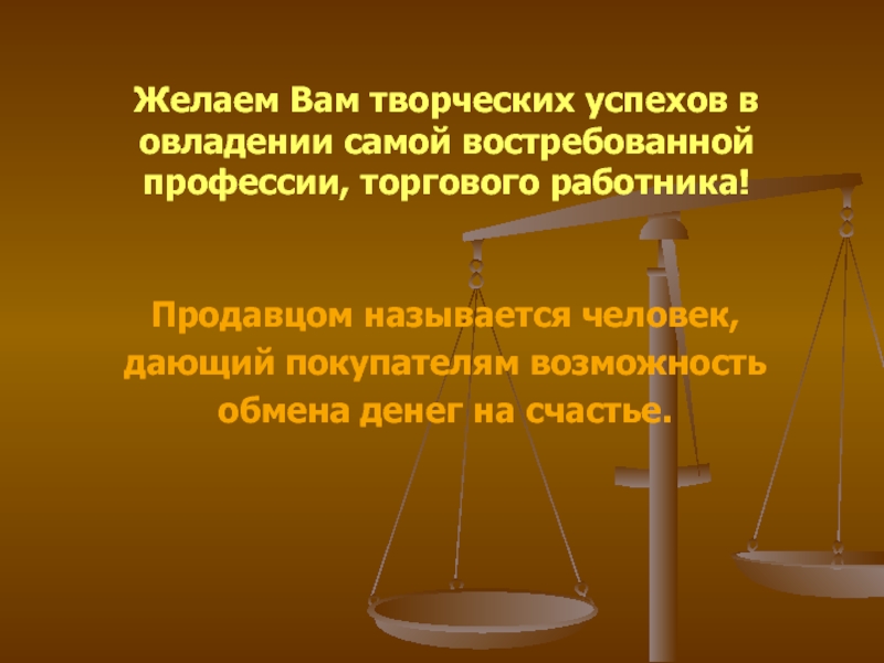 творческих успехов в овладении самой востребованной профессии, торгового работника!