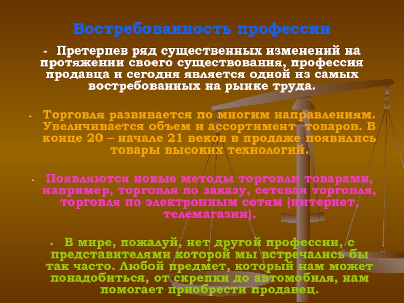 продавца и сегодня является одной из самых востребованных на рынке труда.