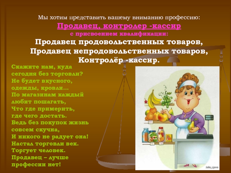Слайд 4Слово «продавец» пришло в наш обиход лишь в конце XIX века,