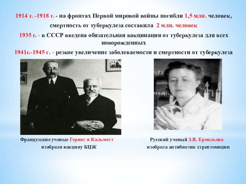 Французские ученые Геринг и Кальметт Русский ученый З.В. Ермольева
