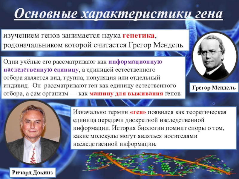 Изначально термин «ген» появился как теоретическая единица передачи дискретной наследственной информации. История биологии помнит споры о том, какие молекулы могут являться носителями наследственной информации.