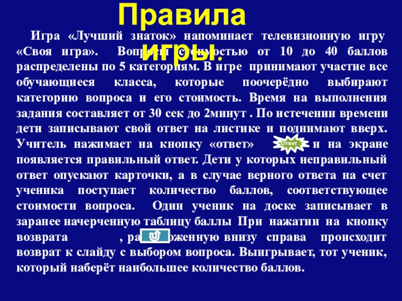Это сайт презентаций, где можно хранить и обмениваться своими презентациями, докладами, проектами, шаблонами в формате PowerPoint с другими пользователями. Мы помогаем школьникам, студентам, учителям, преподавателям хранить и обмениваться учебными материалами.