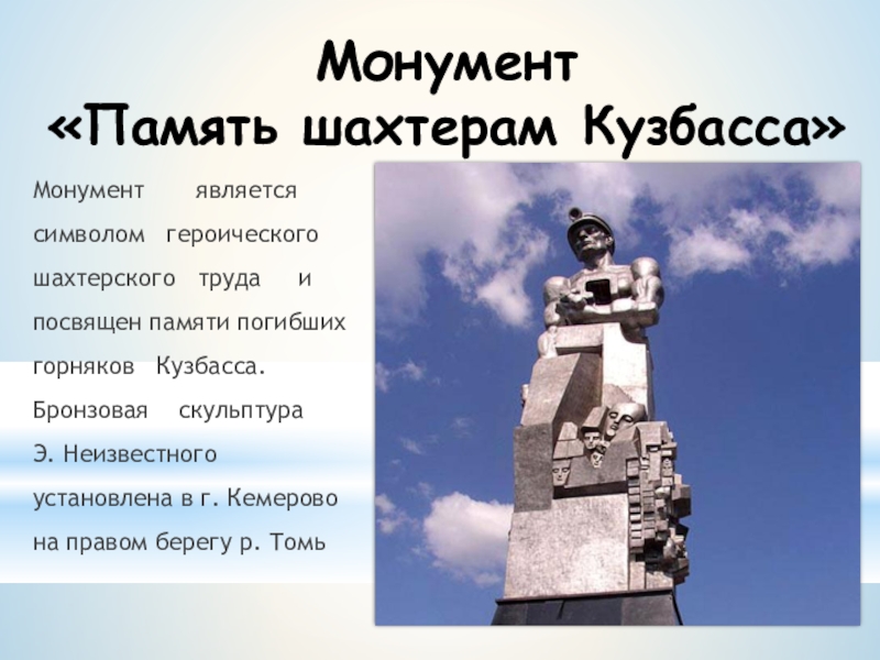 Слайд 4Монумент «Память шахтерам Кузбасса»