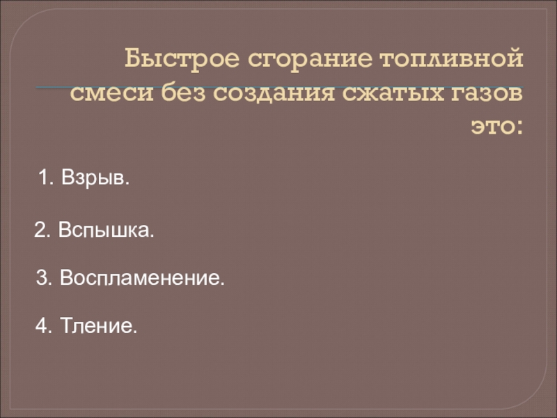 5. Как называется быстрое сгорание топливной смеси без создания сжатых газов?