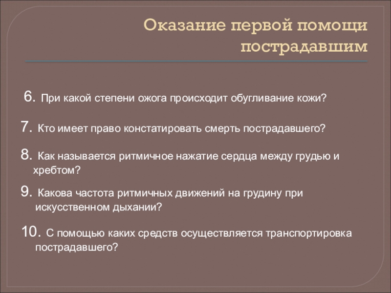 10. С помощью каких средств осуществляется транспортировка пострадавшего?