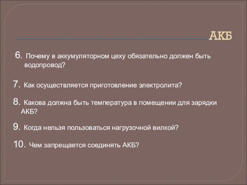 6. Почему в аккумуляторном цеху обязательно должен быть водопровод?