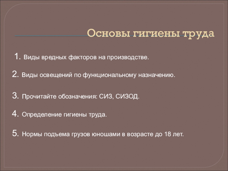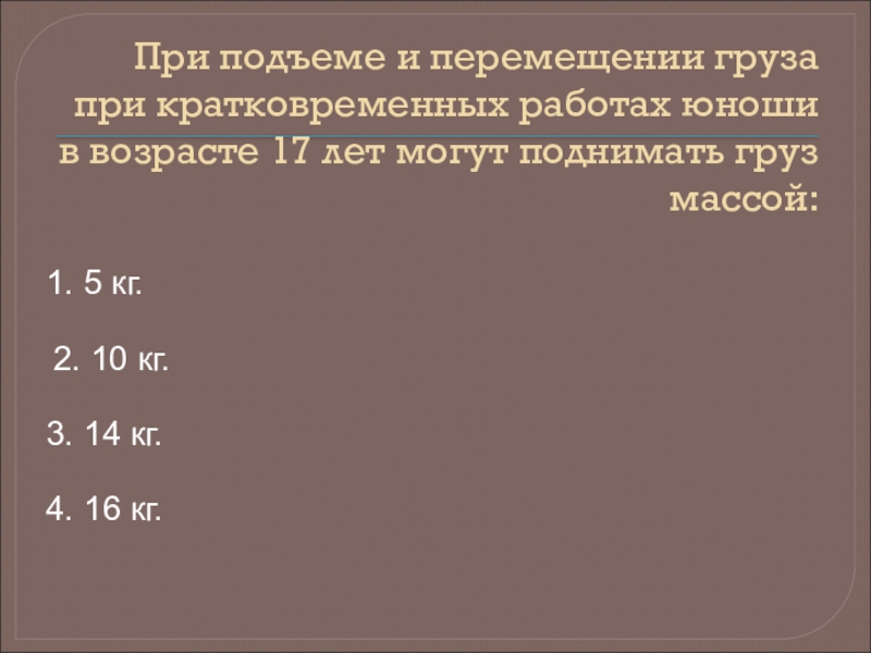 5. Нормы подъема грузов юношами в возрасте до 18 лет.