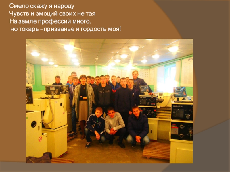 Смело скажу я народу Чувств и эмоций своих не тая На земле профессий много,  но токарь