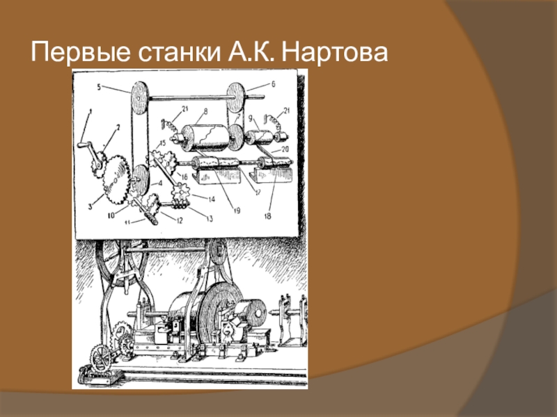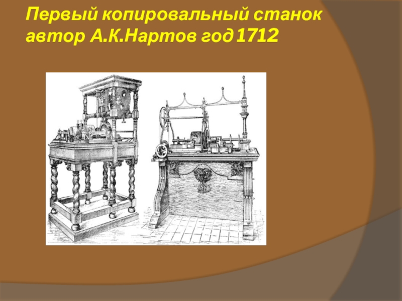 Слайд 19 Первый копировальный станок автор А.К.Нартов год 1712