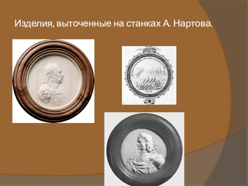 Слайд 23Изделия, выточенные на станках А. Нартова.