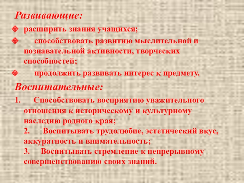 •сформировать ответственность за сохранение культурно-исторического наследия родного края.