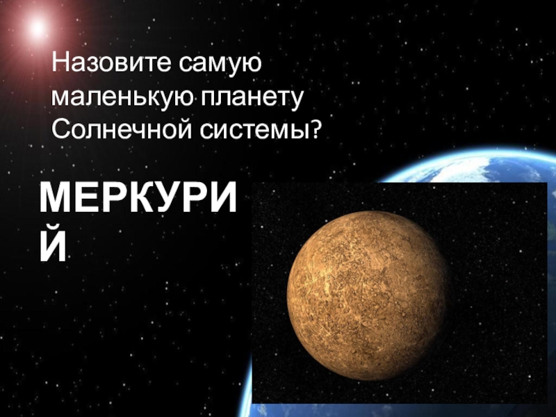 Слайд 12Назовите самую маленькую планету Солнечной системы?
