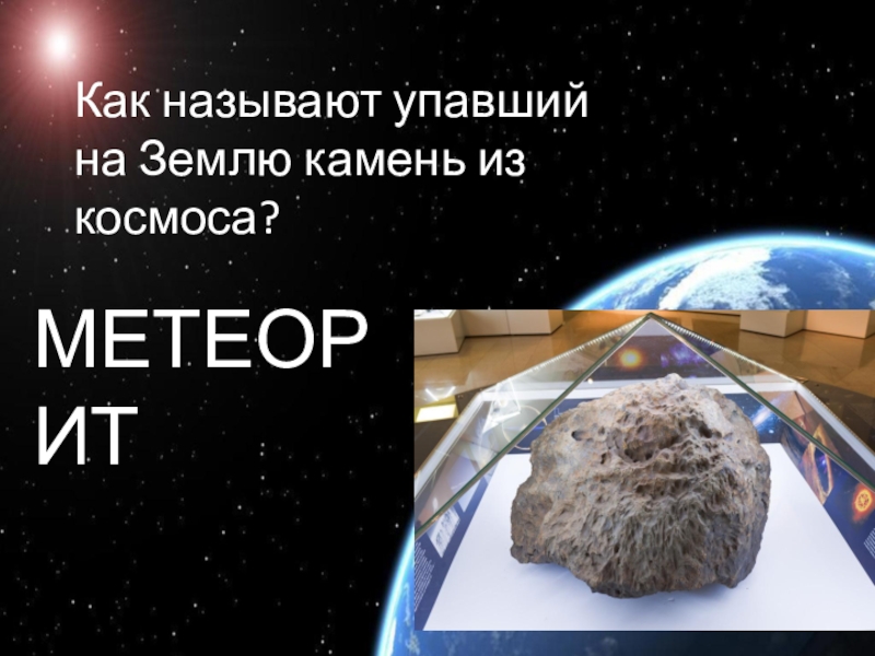 Слайд 17Как называют упавший на Землю камень из космоса?