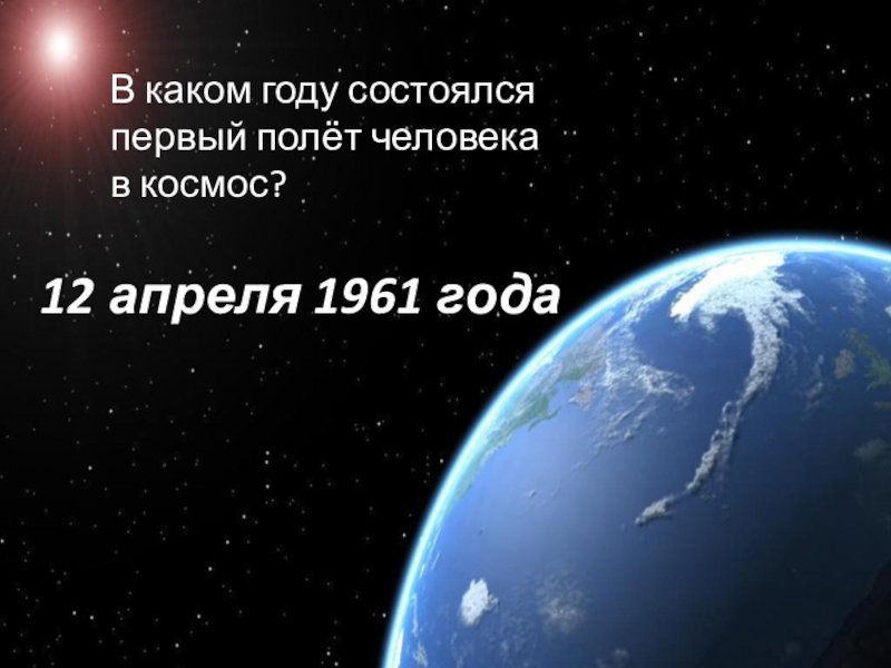 В каком году состоялся первый полёт человека в космос? 12 апреля 1961 года