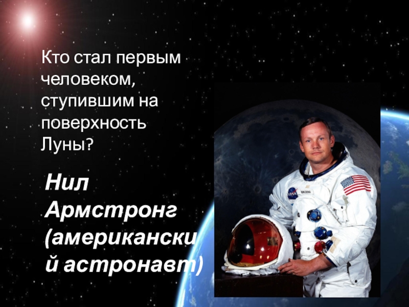 Слайд 9Кто стал первым человеком, ступившим на поверхность Луны?
