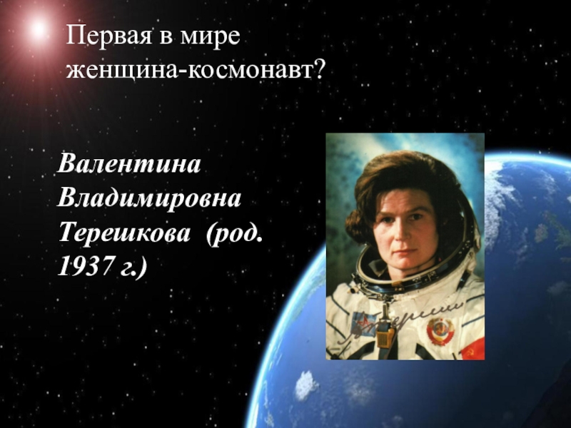 Первая в мире женщина-космонавт? Валентина Владимировна Терешкова (род. 1937 г.)