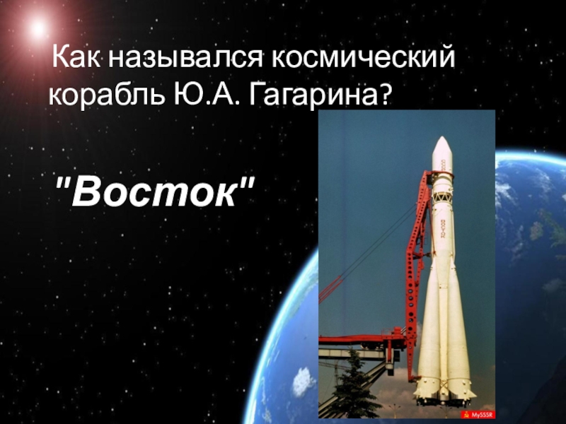 Слайд 7 Как назывался космический корабль Ю.А. Гагарина?