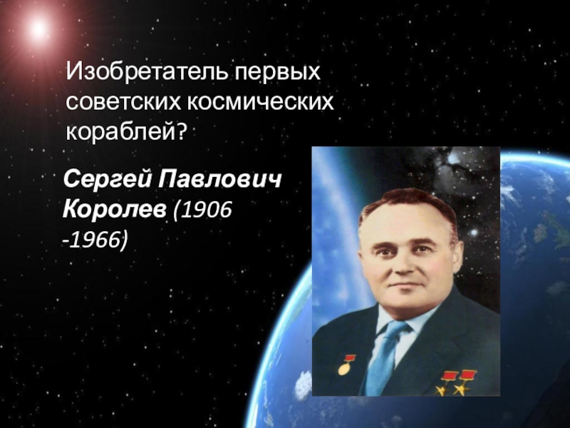 Изобретатель первых советских космических кораблей?Сергей Павлович Королев (1906 -1966)