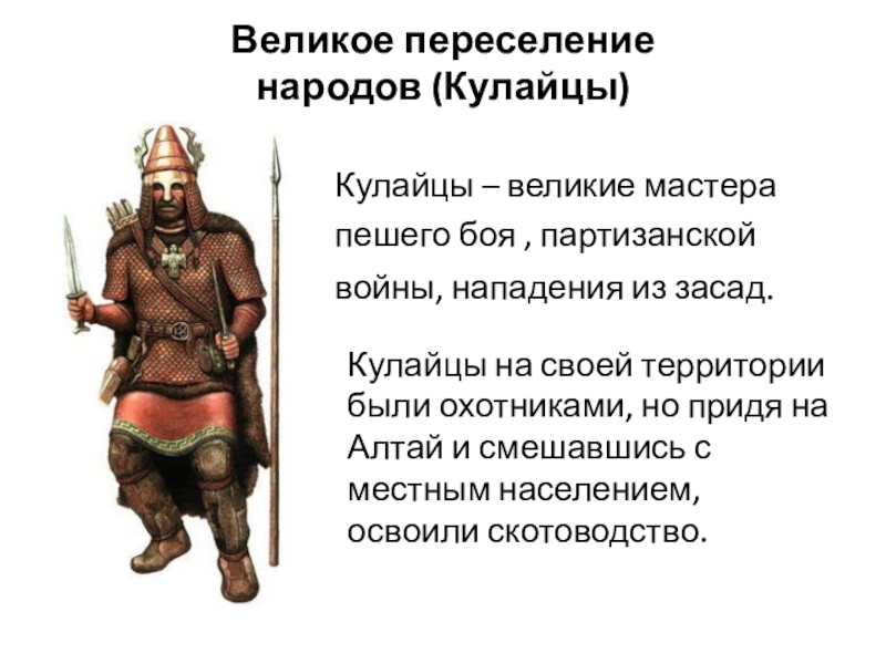 Кулайцы на своей территории были охотниками, но придя на Алтай и смешавшись с местным населением, освоили скотоводство.