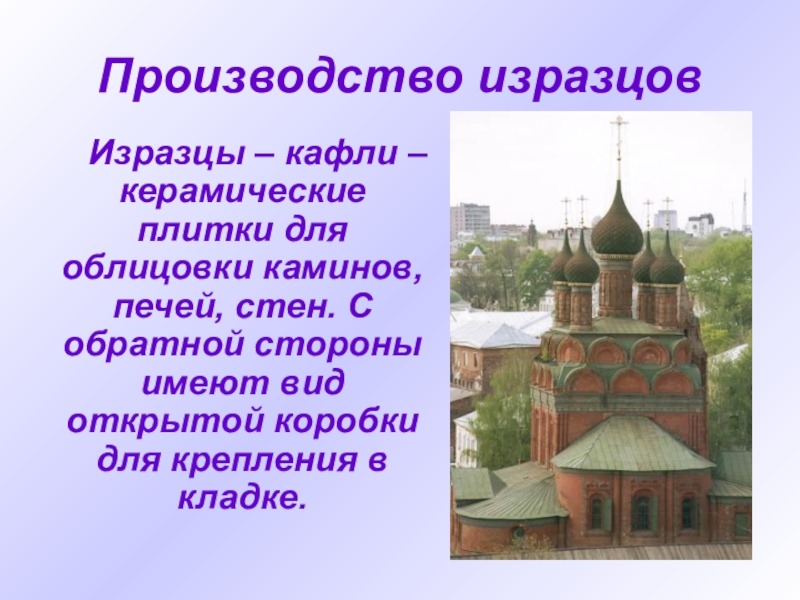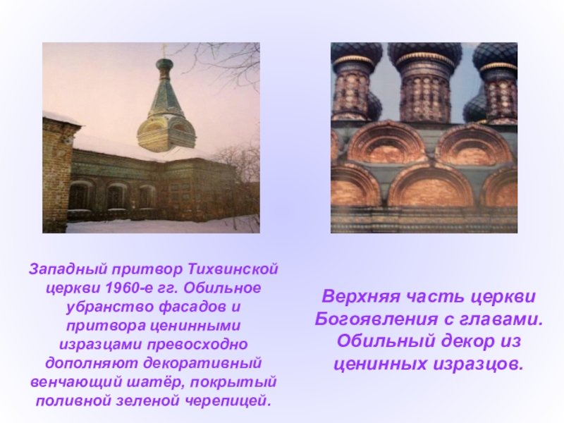 Верхняя часть церкви Богоявления с главами. Обильный декор из ценинных изразцов.