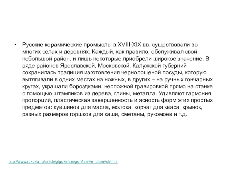 http://www.rukukla.ru/article/gigr/keram/gon4arnye_promycly.htm