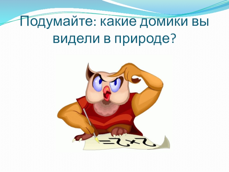 Слайд 30Подумайте: какие домики вы видели в природе?