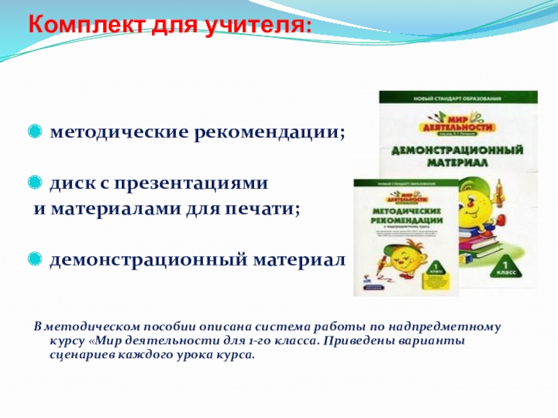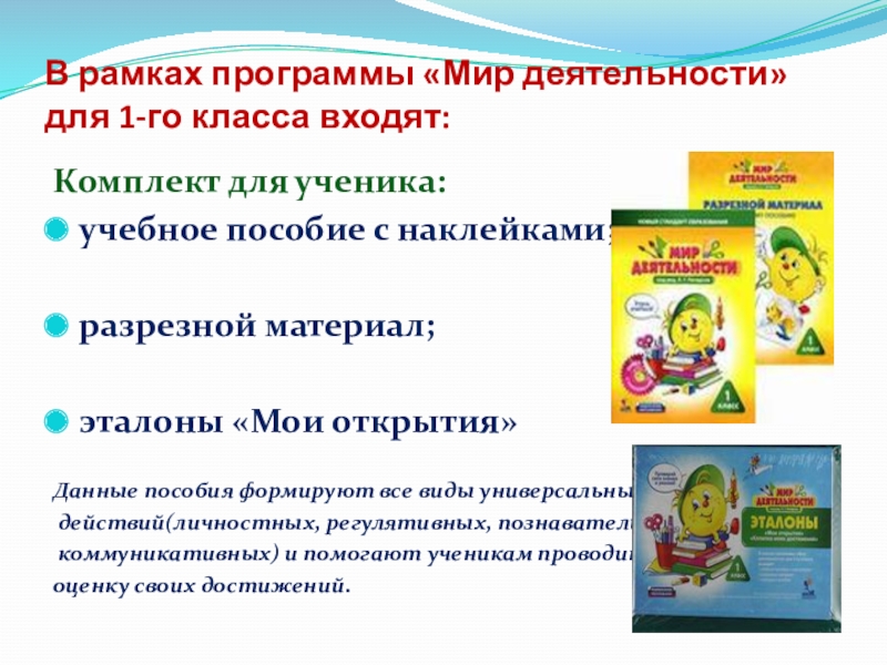 В рамках программы «Мир деятельности» для 1-го класса входят: