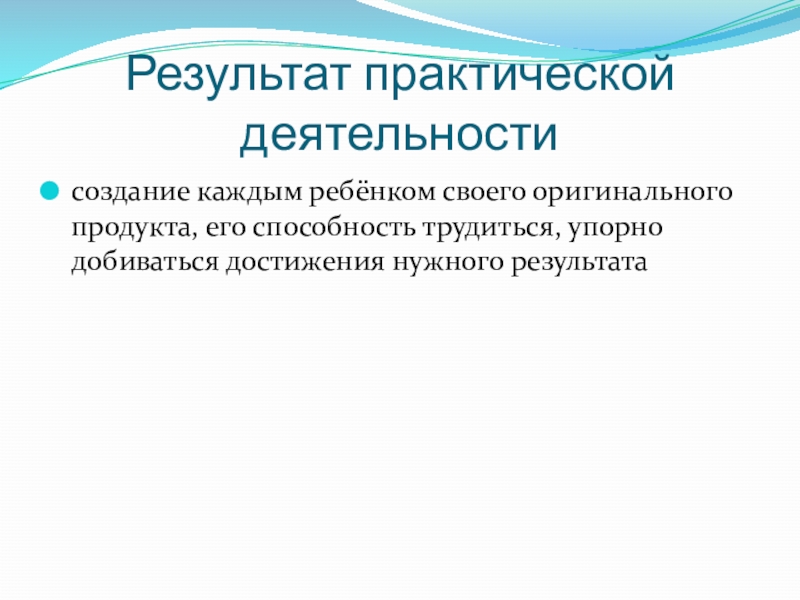 создание каждым ребёнком своего оригинального продукта, его способность трудиться,