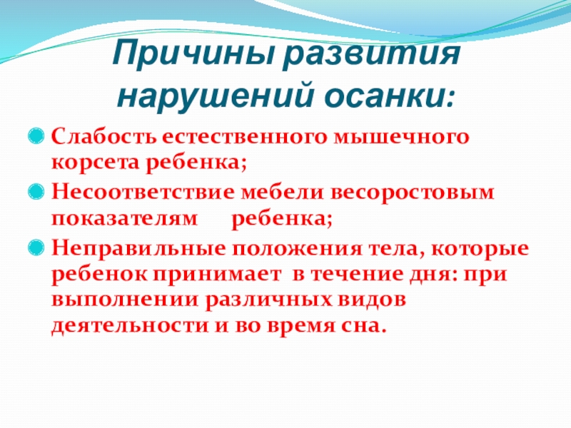 Неправильные положения тела, которые ребенок принимает в течение дня: при выполнении различных видов деятельности и во время сна.