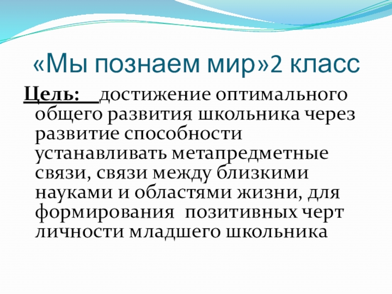 развитие способности устанавливать метапредметные связи, связи между близкими науками и областями жизни, для формирования позитивных черт личности младшего школьника