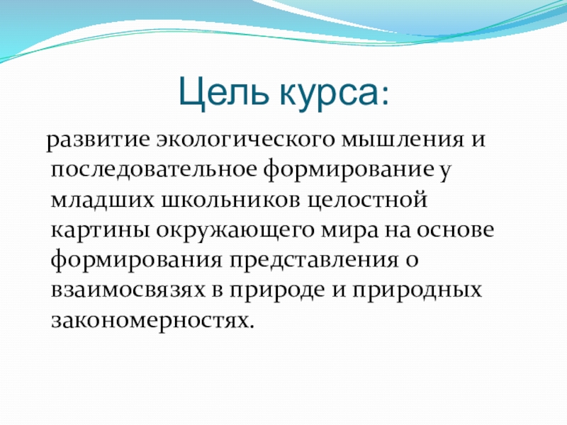 целостной картины окружающего мира на основе формирования представления о взаимосвязях в природе и природных закономерностях.
