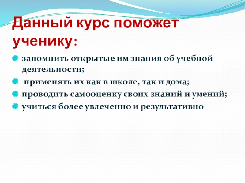 Основной целью курса является создание теоретического фундамента для формирования у учащихся общеучебных умений и связанных с ними деятельностных способностей и личностных качеств