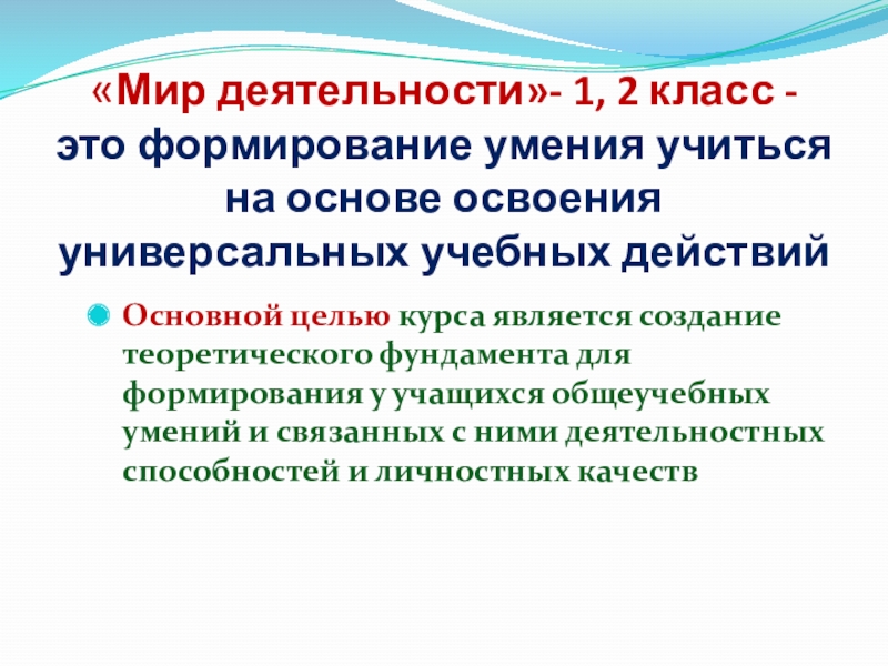 Слайд 3«Мир деятельности»- 1, 2 класс -