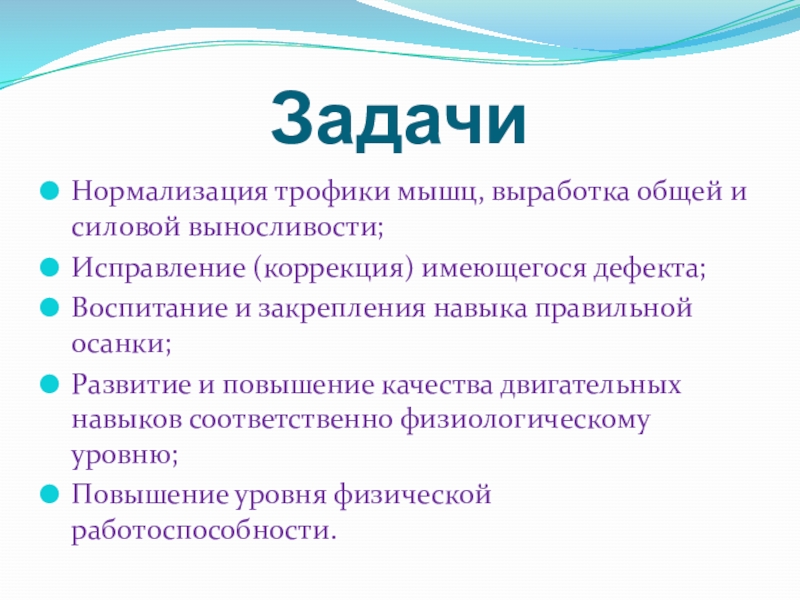 Нормализация трофики мышц, выработка общей и силовой выносливости;