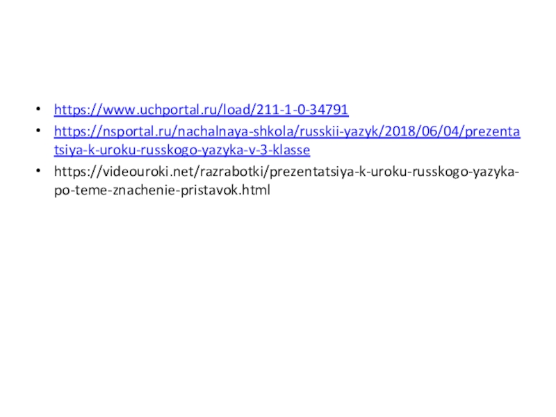 https://www.uchportal.ru/load/211-1-0-34791https://nsportal.ru/nachalnaya-shkola/russkii-yazyk/2018/06/04/prezentatsiya-k-uroku-russkogo-yazyka-v-3-klassehttps://videouroki.net/razrabotki/prezentatsiya-k-uroku-russkogo-yazyka-po-teme-znachenie-pristavok.html