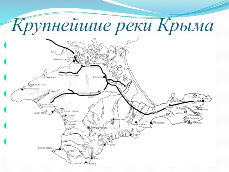 Крупнейшие реки КрымаСалгирАльмаКачаБельбекЧернаяЗападный Булганаки другие
