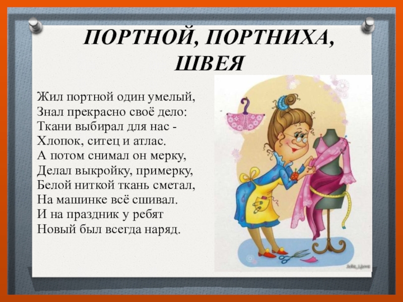 Слайд 19ПОРТНОЙ, ПОРТНИХА, ШВЕЯ