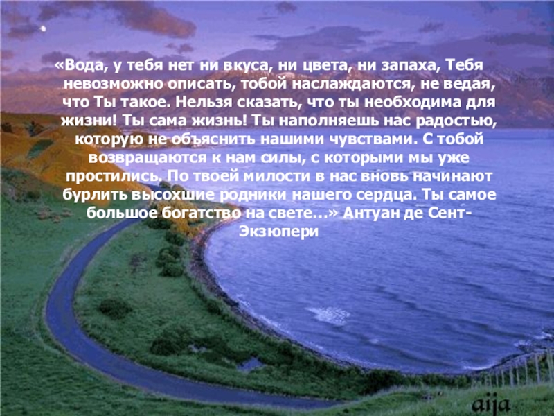 Слайд 4«Вода, у тебя нет ни вкуса, ни цвета, ни запаха, Тебя