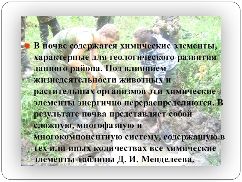 Слайд 6В почве содержатся химические элементы, характерные для геологического развития данного района.