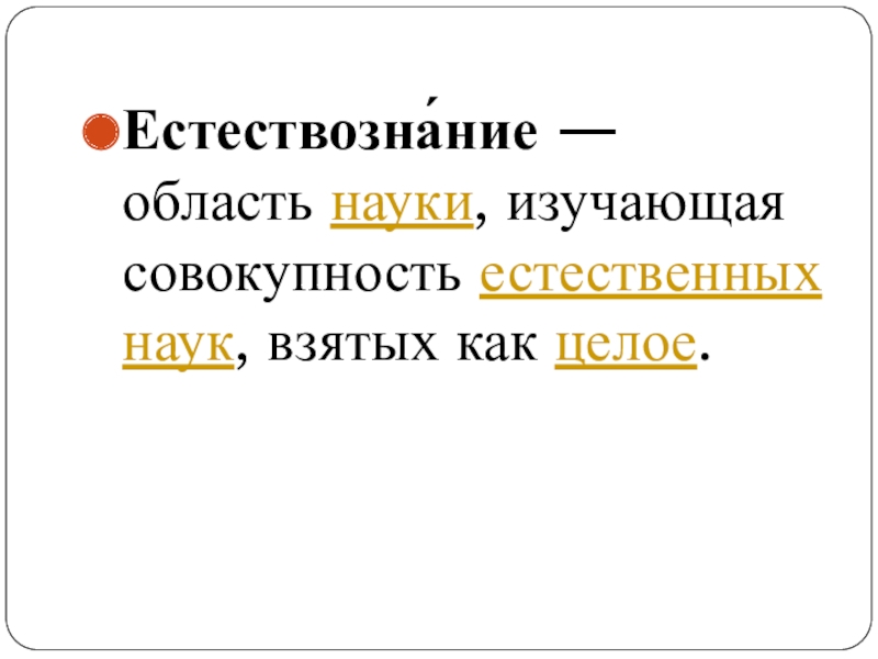 Слайд 2Естествозна́ние — область науки, изучающая совокупность естественных наук, взятых как целое.