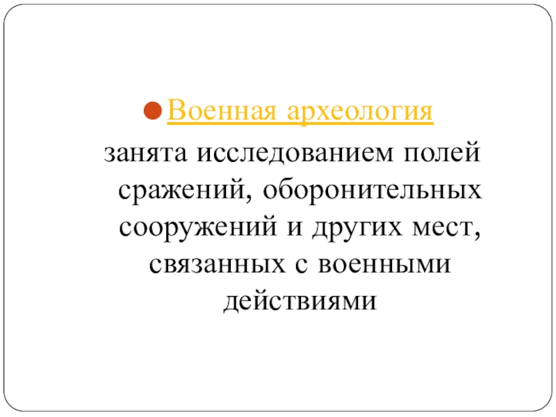Военная археология занята исследованием полей сражений, оборонительных сооружений и других мест, связанных с военными действиями