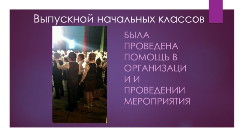 Выпускной начальных классовБыла проведена помощь в организации и проведении мероприятия