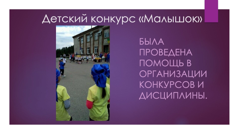Детский конкурс «Малышок»Была проведена помощь в организации конкурсов и дисциплины.
