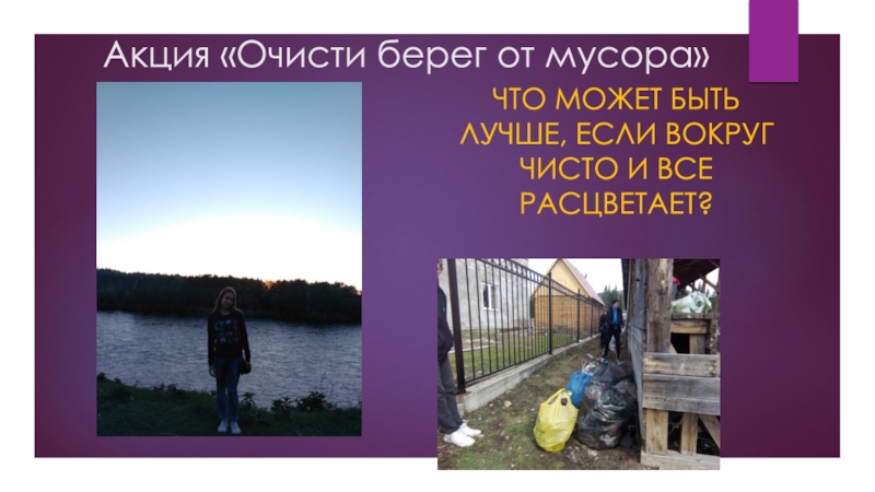 Акция «Очисти берег от мусора»Что может быть лучше, если вокруг чисто и все расцветает?